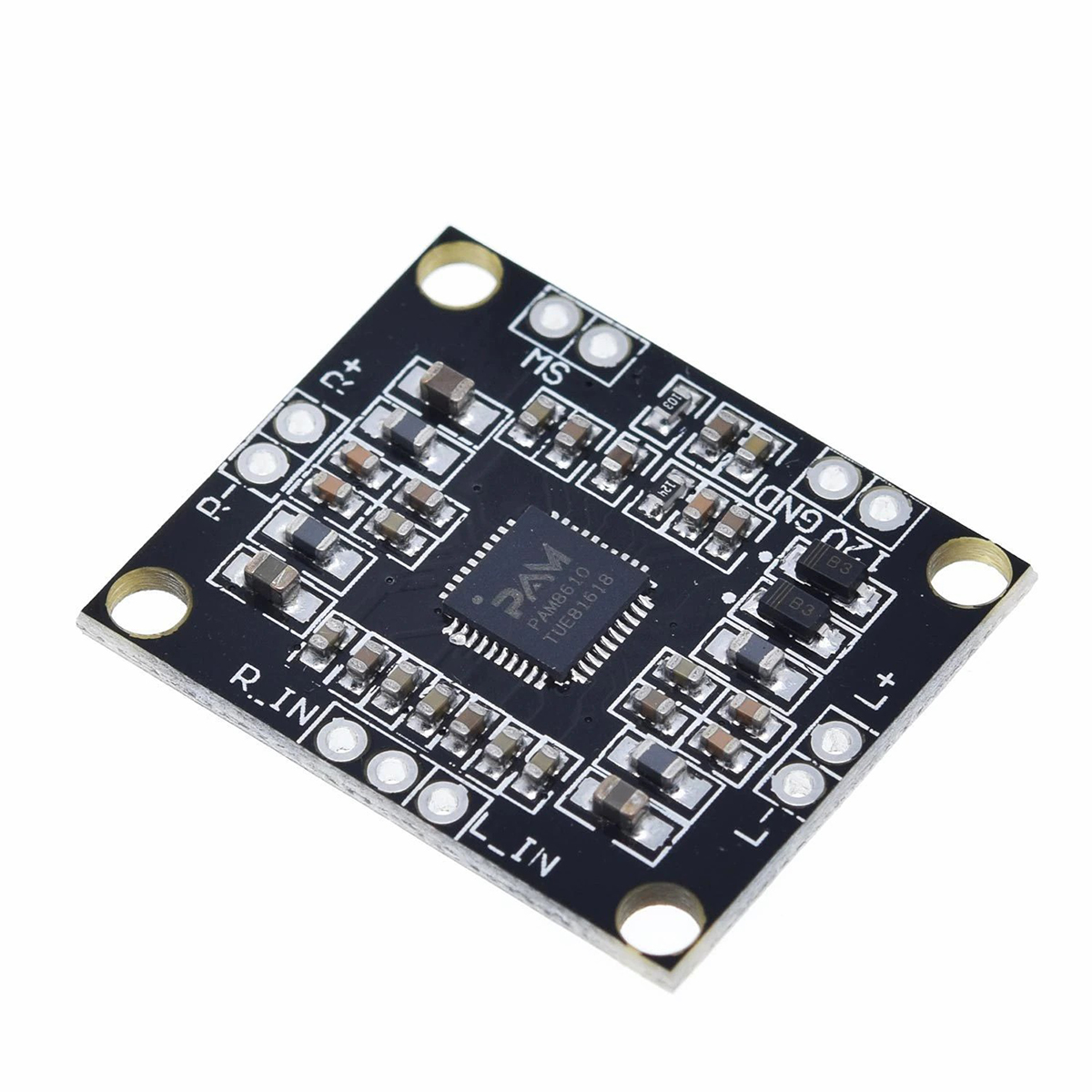 O módulo PAM8610 é construído em torno do integrado PAM8610, que é um amplificador de áudio em ponte dupla (BTL - Bridge Tied Load) que não necessita de um filtro de saída ou dissipador de calor quando utilizado com um alto-falante de 8 Ohms. Isto deve-se à sua eficiência de até 90%, o que reduz a quantidade de calor gerado. Adicionalmente, o PAM8610 possui proteções integradas contra curto-circuito e superaquecimento. Este módulo amplificador é adequado para aplicações que exigem alta qualidade de áudio e eficiência de energia, como sistemas de som domésticos, alto-falantes portáteis e outros dispositivos de reprodução de áudio.