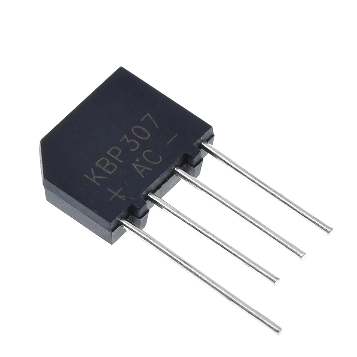 A Ponte Retificadora KBP-307 de 700V 3A é um componente eletrônico utilizado para converter corrente alternada (AC) em corrente contínua (DC). Esta ponte retificadora específica é capaz de suportar uma tensão de pico reversa de até 700 volts e uma corrente direta de até 3 amperes, tornando-a adequada para uma variedade de aplicações de potência média.