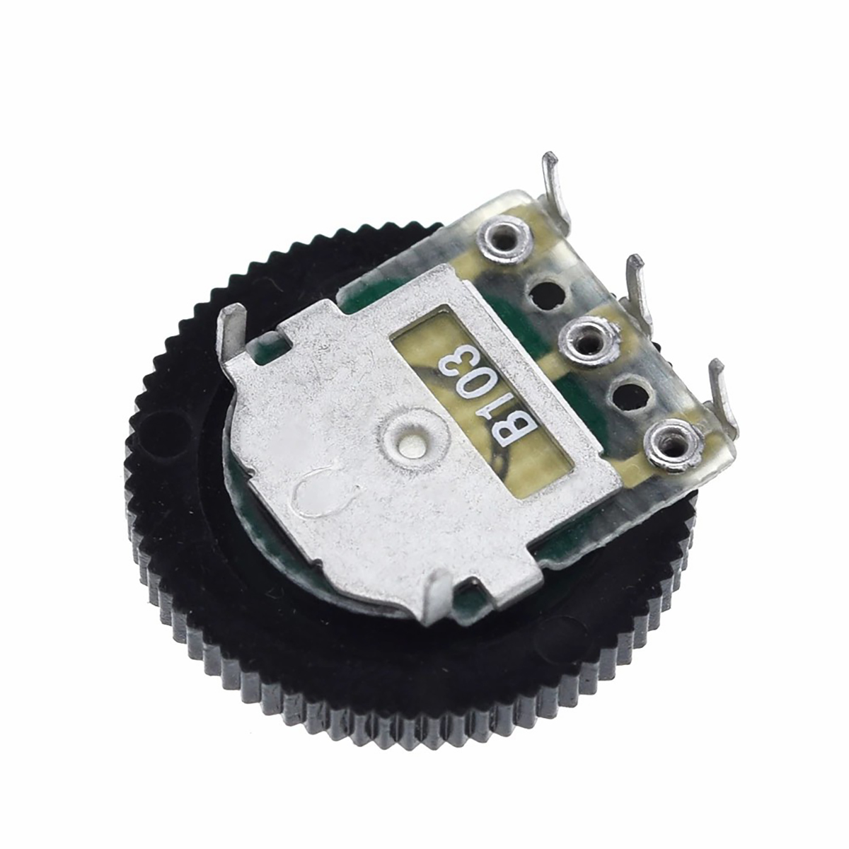 O potenciômetro 10K B103 do tipo roda é um componente eletrônico resistivo de três terminais que funciona como um divisor de tensão ajustável. Seus terminais de resistência têm um valor de resistência constante de 10K Ohms (10 kiloohms), que é o "B103" no nome do produto. Isso significa que a resistência total entre os terminais de resistência é sempre 10K Ohms, independentemente da posição do dial. Este é um parâmetro crucial em aplicações de áudio e controles de volume, onde é necessário um controle de volume de resistência constante.
