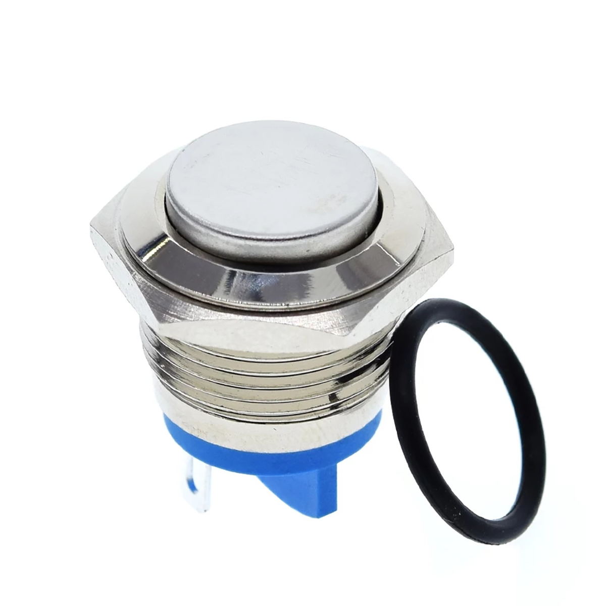 Este botão é projetado com um corpo de metal resistente e um diâmetro de montagem de 16mm, oferecendo um toque sólido e agradável ao usuário. O botão tem um mecanismo de ação momentânea, o que significa que o circuito é fechado (ou aberto) apenas enquanto o botão está sendo pressionado. Em termos de conexão elétrica, ele possui terminais de solda que permitem uma conexão segura e duradoura com o circuito. Com seu design robusto e à prova d'água, este botão é adequado para uma ampla gama de aplicações, incluindo controle de máquinas, sistemas de segurança, dispositivos marítimos, e qualquer outra situação que requer um interruptor resistente e confiável.