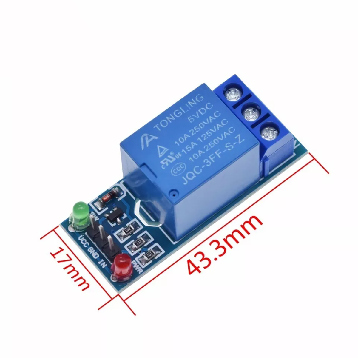 O módulo consiste em um relé eletromecânico que atua como um interruptor. Quando a entrada do módulo (tipicamente conectada a um microcontrolador) é ativada, o relé fecha o circuito que está controlando. O módulo é projetado para operar com uma tensão de controle de 5V, tornando-o compatível com uma variedade de microcontroladores, incluindo muitas placas Arduino e Raspberry Pi. O relé em si é capaz de controlar uma carga de alta tensão (geralmente especificada pelo fabricante), permitindo que este módulo controle uma variedade de dispositivos, desde luzes e motores até aquecedores e outros aparelhos elétricos. A interface de controle é geralmente feita através de pinos de header padrão, que permitem uma fácil conexão com várias plataformas de microcontrolador.